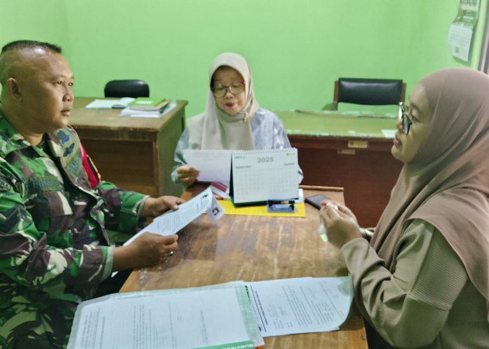Babinsa Kel. Larangan bertemu langsung dengan Kepala Koperasi H. Ruslani, Bendahara Ibu Upik, dan Staf Koperasi Ulya Wulandari. Pertemuan ini membahas perkembangan penerimaan pendaftaran anggota baru yang sudah mencapai 50 warga Kelurahan Larangan.-kodim-radarcirebon