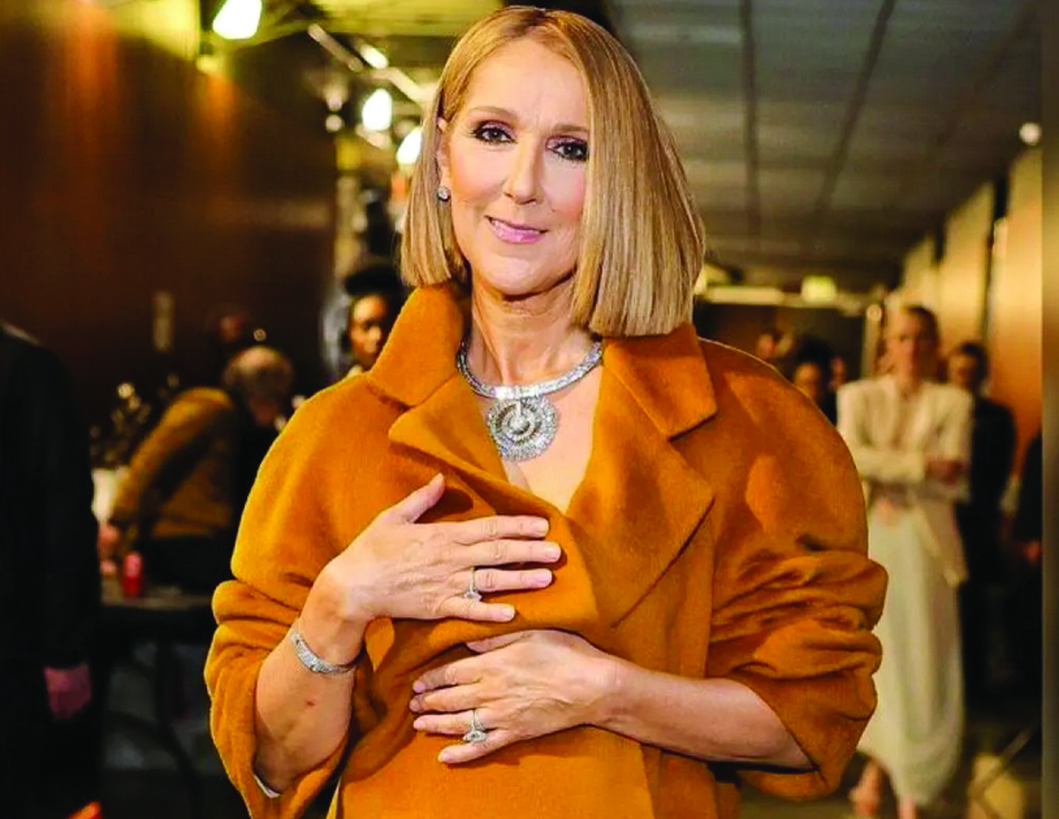 Dengan kondisi kesehatannya yang tengah mengemuka, solois yang telah meraih 5 piala Grammy ini telah didiagnosis menderita kelainan neurologis yang langka dan tak dapat disembuhkan, yaitu Stiff Person Syndrome (SPS) pada tahun 2022. Saat Dion naik ke atas panggung, dia disambut dengan tepuk tangan meriah dari hadirin, termasuk bintang-bintang musik dunia.