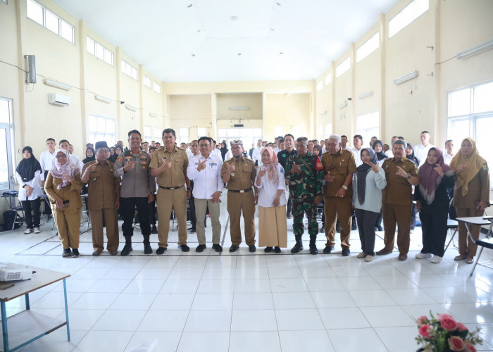 Bupati Cirebon, Drs. H Imron, M.Ag meresmikan gedung usaha kesehatan sekolah (UKS) di SMPN 1 Sumber, Selasa 20 Februari 2024. Sebelum peresmian, kegiatan diawali dengan sarapan bersama.-Dedi Haryadi-radarcirebon.com
