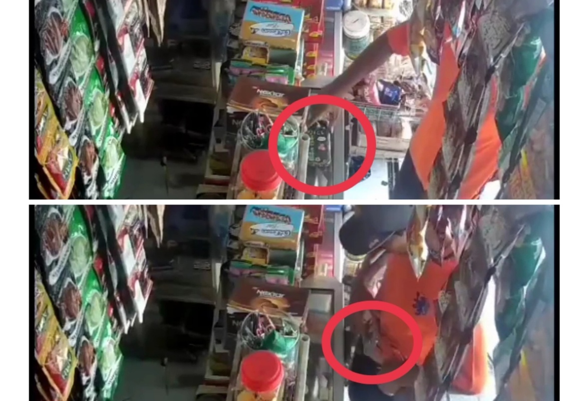 Namun saat menunggu dilayani, dalam video, pria tersebut mengambil sebuah handphone yang tergeletak di atas etalase dan memasukkannya ke balik bajunya tanpa sepengetahuan pemilik warung.